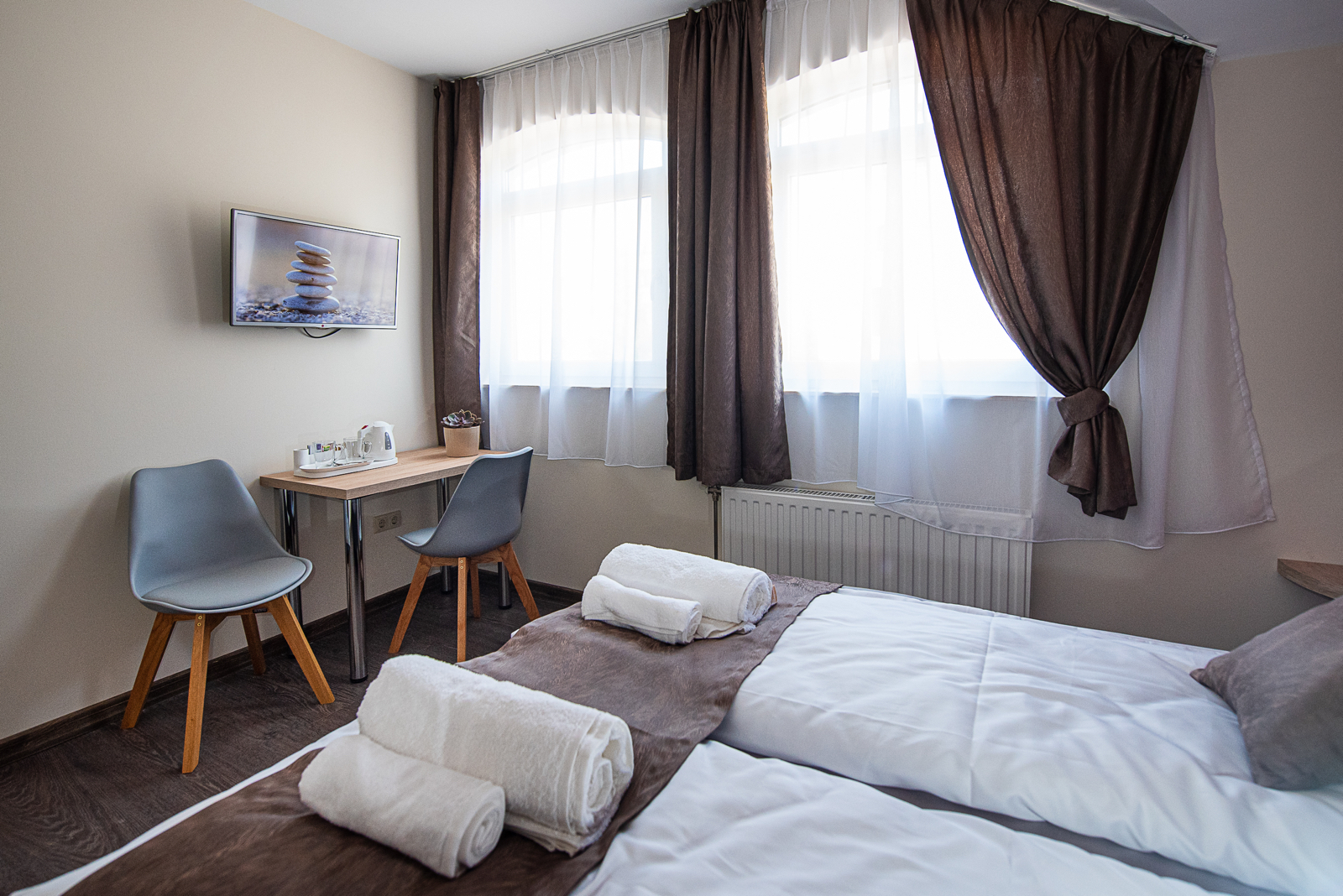 Modern kialakítású igényesen berendezett szobákkal várjuk a vendégeinket. Panziónkban 3 darab 2 ágyas szoba, és 3 darab apartman található. A nagyobb helyet igénylők számára egy 2 légterű apartman is rendelkezésre áll. Minden szoba klímával, smart tv-vel és az egész épületben ingyenesen igénybe vehető WIFI-vel rendelkezik. Az ágy mérete minden szobában 160×200 cm.